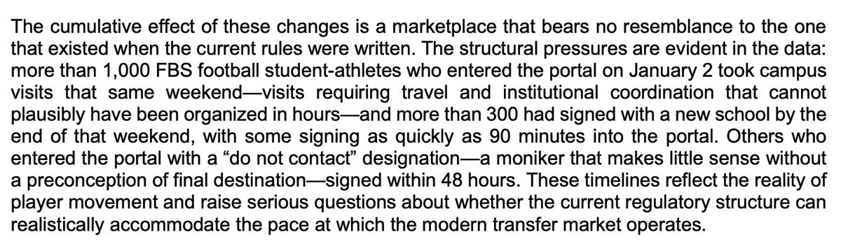 The conference then sighted as evidence that more than 1,000 players entered the portal as soon as it opened on Jan. 2, and then hundreds coincidentally had visits lined up and deals agreed upon nearly immediately.