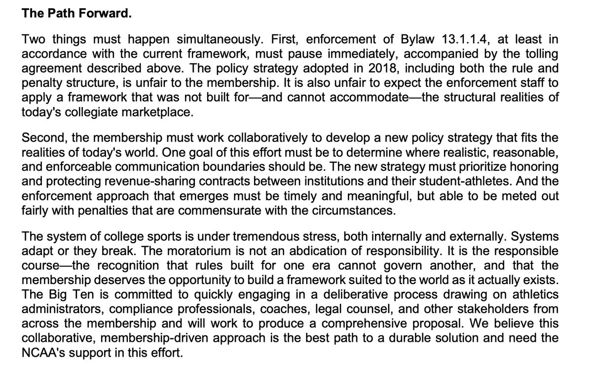 The Big Ten on Wednesday released an open letter to the NCAA calling on the organization to halt all current investigations into tampering in regards to the transfer portal until the rules can be re-written for reality as its is on the ground.